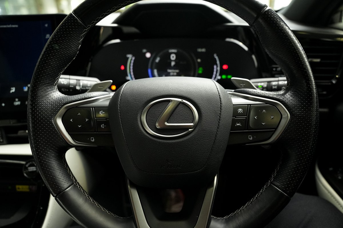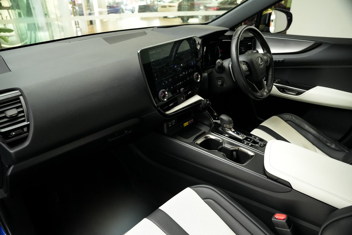 Powered by a smooth and efficient hybrid system with plug-in capability, the NX 450h+ offers strong acceleration, responsive handling and excellent fuel economy tailored for both city commuting and highway cruising. The F Sport specification further enhances dynamic performance with sport-tuned suspension, unique styling cues, and an athletic stance that gives this NX a commanding road presence.